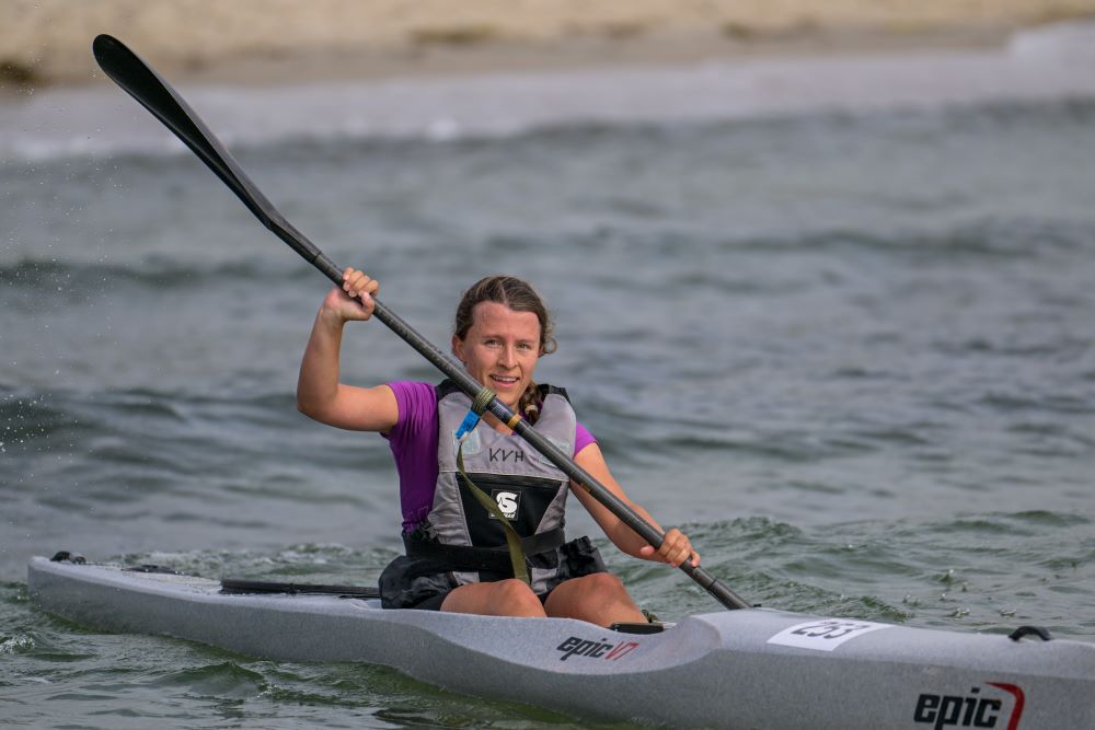In Absprache mit Veranstalter und DLRG wurde aus Sicherheitsgründen die Paddelstrecke auf 3 km verkürzt und von der Ausrichtung so vorgenommen, dass in erster Linie Up- und Downwindkurse gefahren werden konnten, allerdings blieb es bei den Wenden kritisch, eine weitere Schwierigkeit stellte das Drehen des Windes von Südwest auf West während des Wettkampfs dar. So ließen sich einige Kenterungen nicht verhindern. Mit diesen Bedingungen kam am besten Tomas Kälble im Seekajak zurecht (19:12), dicht gefolgt von Malte Ruhm allerdings im Marathonboot (19:41)!
